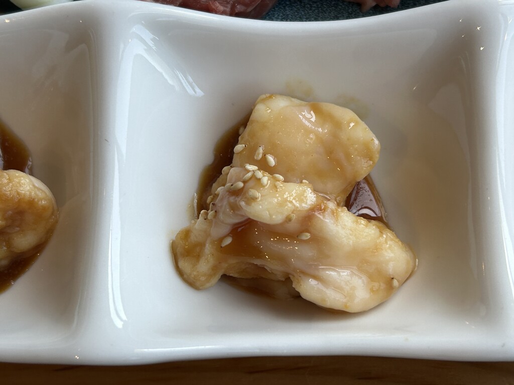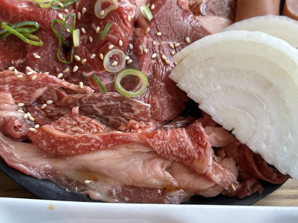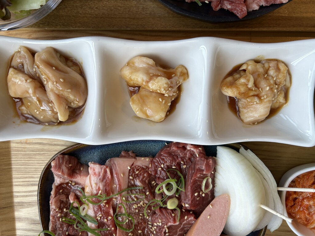 淡路牛カルビ、特選ハラミ、白モツ。赤セン、テッチャン、