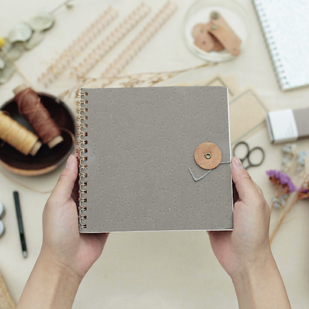 府中市の「ことぶく」は、好きな紙でのオリジナルノート作りを行う。