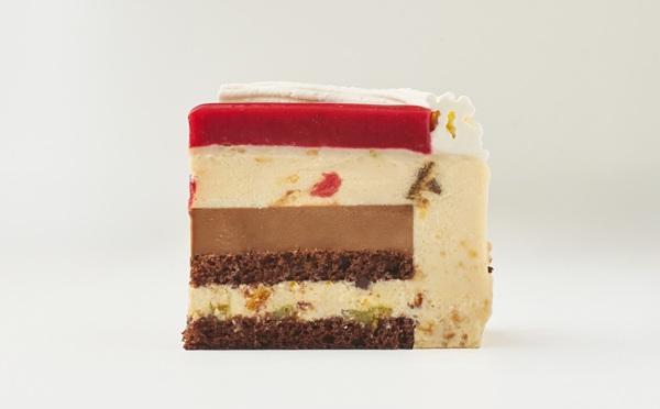 カッサータは中に入れる食材のさまざまな食感を楽しめるのが魅力だ。「2025 ナターレ カッサータ」も、柑橘系の洋酒に漬け込んだドライフルーツをたっぷり混ぜ込んだリッチなムースに、カリカリのナッツやしっとり食感のドライフルーツ、滑らかな舌触りのチーズの食感がマッチした、大人のクリスマスケーキとなっている。