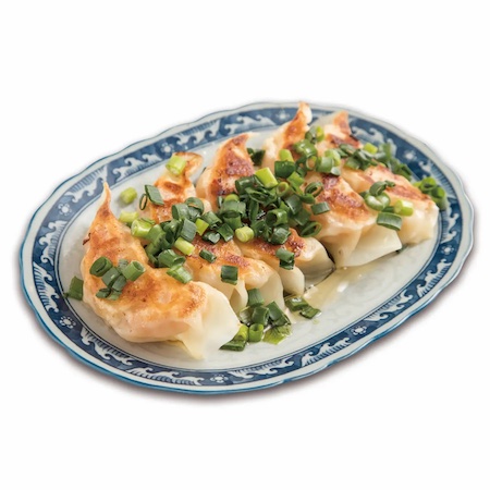 「海老ぎょうざ5個」550円(税込)は、ぷりっとした海老の食感と、手包みならではのもっちりとした皮が自慢の逸品。焼き上げることで香ばしさが際立ち、噛むほどに広がる海老の甘みとジューシーな旨味が口いっぱいに広がる。
