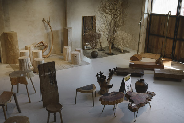 「木がはえたベンチ」や「使いにくそうなポールハンガー」「大きすぎるテーブル脚」など、これまでの展示会とはちょっと違う、クセ強めのプロダクトや変木が大集合している。