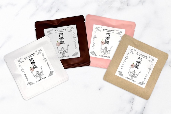 新しくなった「阿修羅三兄弟」は、阿修羅オリジナル、阿修羅ほうじ和紅茶、阿修羅べにふうきの3種類をセットにしたアソートで、数量限定で販売されている。商品のパッケージカラーはブルーグリーンで、内容は阿修羅3種セット、価格は1,200円(税込)。