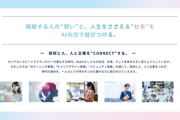 かつてないスピードでテクノロジーが進化する時代。AIは人々の生活、仕事、そして未来を大きく変えようとしている。AISEE CONNECTは「AIラーニング事業」「キャリアデザイン事業」「コミュニティ事業」を通じて、技術と人、人と企業をつなぎ、時代の進歩を、一人ひとりが幸せをつかむ確かな力に結び付けていく取り組みを行っている。