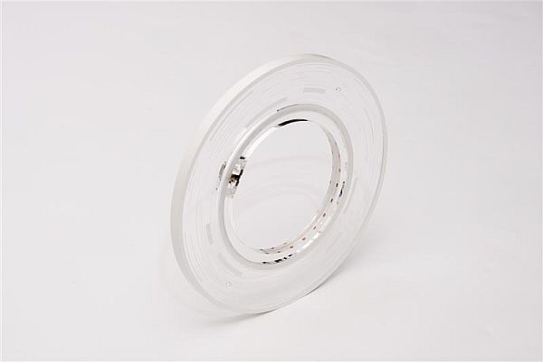 「ライトリング」の電源コードは、「ベーシックスタンド」の支柱背面にクリップで固定でき、正面から配線の見えにくい美しい展示が可能だ。