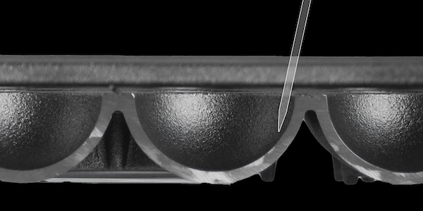 さらに、穴の体積と同量の生地を確保できるよう、フチの高さを設計。この高いフチが生地をしっかり受け止める。穴部とフチの均一な生地量が“でかまる”の理由だ。溝のラインが生地を区切る目安となり、適量を集めるサポートになる。