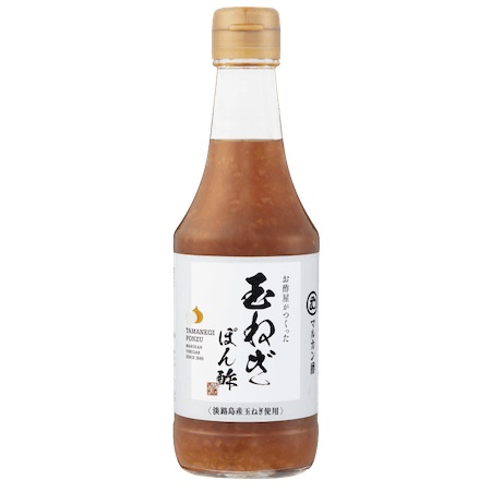 「玉ねぎぽん酢」は、甘味が特徴の淡路島産玉ねぎを使用し、ゆず果汁でさっぱり仕上げた商品。お酢屋ならではの「静置発酵の黒酢」を加え、旨味を広げている。