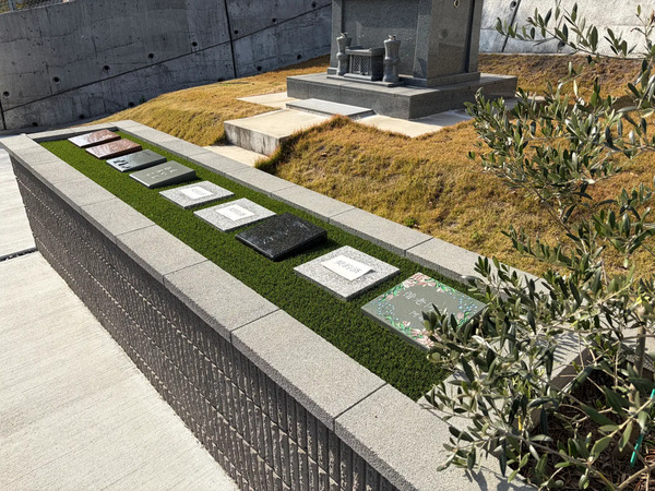 樹木葬は、シンボルツリーの周りに石のプレートを設置し、その下にお骨を納める自然葬形式。自然の中で眠りたい人や、従来の墓石文化にこだわらない人に選ばれている。