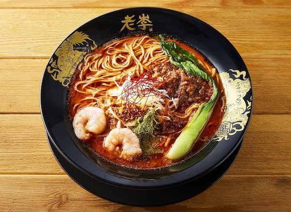 同店一番人気のメニュー「老李和山椒担々麺」1,600円は、海老・味噌・山椒が織りなす、背徳のクリーミースープが特徴だ。