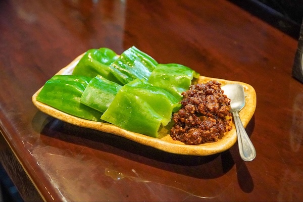 串もいいけど、ちょっと箸休めしたい夜には「肉味噌ピーマン」がおすすめ。パリッとした生のピーマンに、自家製の甘辛肉味噌を詰めるだけのシンプルさ。だけどそれが、びっくりするくらい合う。