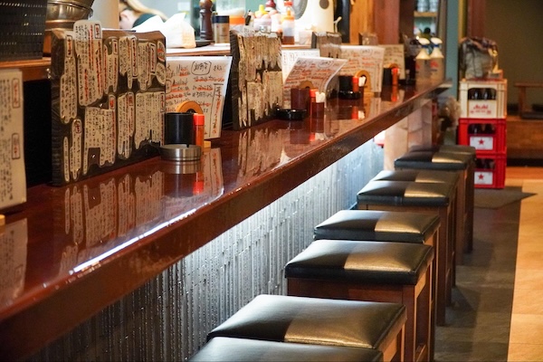 カウンターで一人飲み。掘りごたつでのんびり。テーブルを囲んで笑い合うグループもいる。