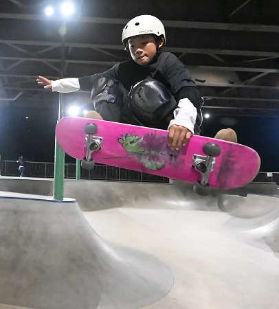 パーク・バーチカルライダーの西村悠さんは、12歳の小学6年生。バーチカルに取り組む若いライダーで、高さのあるエア技を武器に数々のパークの大会で上位に食い込んでいる。