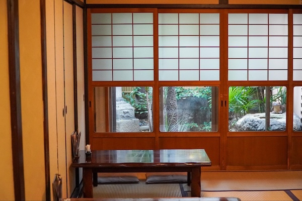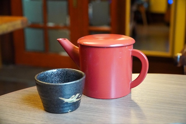 「お好きな席どうぞー」と声をかけられ、奥へ進むと、モダンな照明と畳が同居する心地よい空間が広がる。席は18。テーブルと座敷。肩の力が抜けるような、静かな時間が流れている。