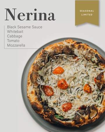 そして季節限定メニューは、黒胡麻ソース、シラス、キャベツ、トマト、モッツァレラの「ネリーナ(Nerina)」2,900円、