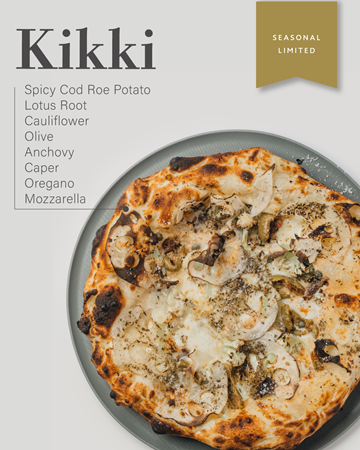 明太子ポテト、蓮根、カリフラワー、オリーブ、アンチョビ、ケイパー、オレガノ、モッツァレラの「キッキ(Kikki)」2,600円の2種類が味わえる。