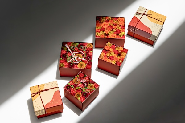 黄金色の有機的なラインをまとわせた華やかな「New Year Box 2026」は、朱赤の深みと流れるような曲線が重なり、新しい一年を鮮やかに照らすニューイヤー限定のフラワーボックス。上品で明るいデザインの蓋を開けると、色鮮やかであたたかい印象を与えるフラワーデザインが目一杯に広がる。