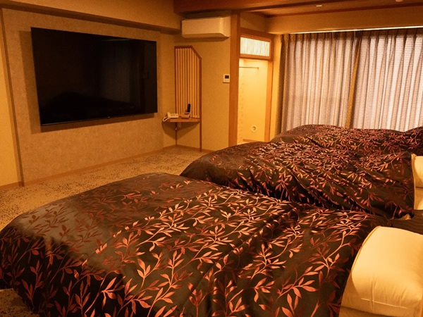 栃木県芳賀郡益子町の旅館「益子舘里山リゾートホテル(以下、益子舘)」が、一部の客室をリニューアル。12月9日(火)より栃木県内でも希少な3ベッド常設&85インチ大画面テレビの贅沢空間を再現した客室を用意している。