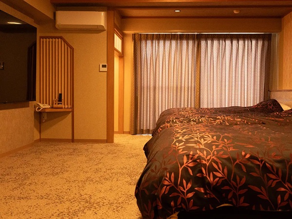 客室は「露天風呂付き和室」から「最上階モダン和洋室」、地元の大地を表現した「アーティスティックルーム」など豊富な種類を用意している。2023年5月にはソファとYogibo、65インチテレビを設置した「リラックス和室」をリニューアルした。