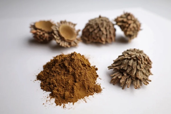 「ペリット・クプール」とはトルコ語で“どんぐりの帽子”の意味。その名の通り、森で自然に落ちたどんぐりの帽子部分を拾い集め、植物タンニン剤として活用している。自然の恵みをそのまま活かしているため、サステナブルな製品となっている。バッグ・鞄・靴・財布などの小物から、アパレル・インテリアまで幅広い用途で使用できる。