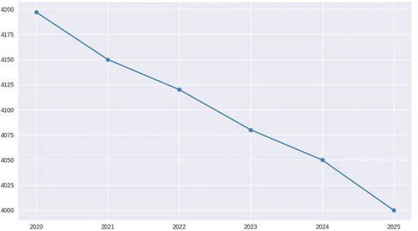 2020年から5年間の人口減少グラフ※縦軸:人口/横軸:年