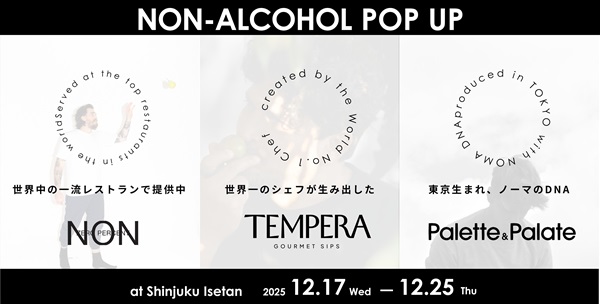 アルト・アルコは、12月17日(水)~25日(木)のクリスマス期間に、伊勢丹新宿店地下一階のシェフズセレクションプロモーションコーナーにて、同社のノンアルコール商品を紹介するポップアップを開催する。