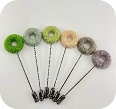 「つむりんぐラペルピン」に使用しているのは、茨城県を代表する伝統工芸品であり、ユネスコ無形文化遺産にも登録されている結城紬の残り糸だ。稀有な工程で作られる結城紬の、反物を織った後に発生する残り糸を活用し、スーツに挿すリング状のアクセサリーとして仕上げている。「結城紬の存在感」を気軽に着飾ることができ、残り糸を活用しての新しい価値の提供にもつながる商品となっている。