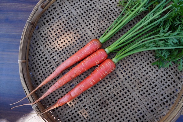 はまべに人参は、人参の甘みが濃すぎないので、鍋との相性抜群。青臭さもないため、人参嫌いの人もパクパク食べられる。とれたて一番人気の品種。栽培期間中、農薬・化学肥料不使用だ。