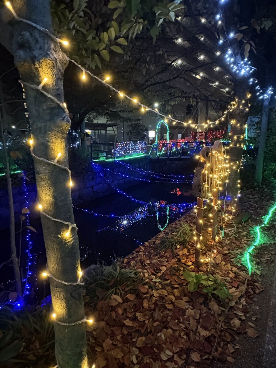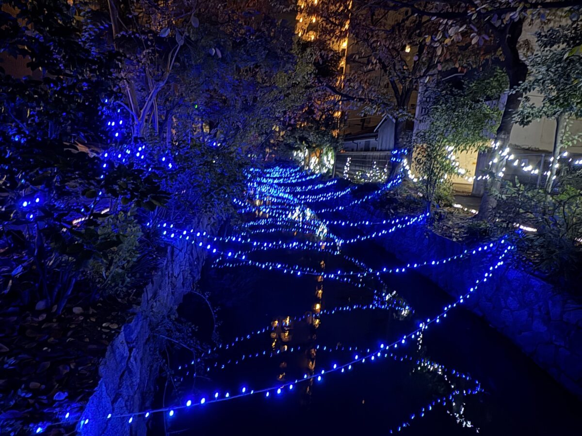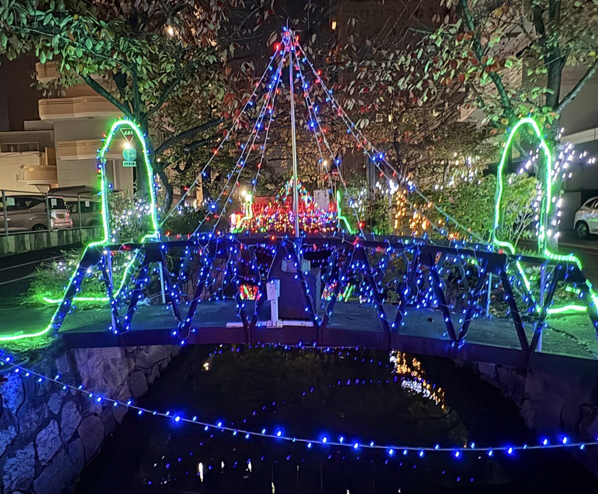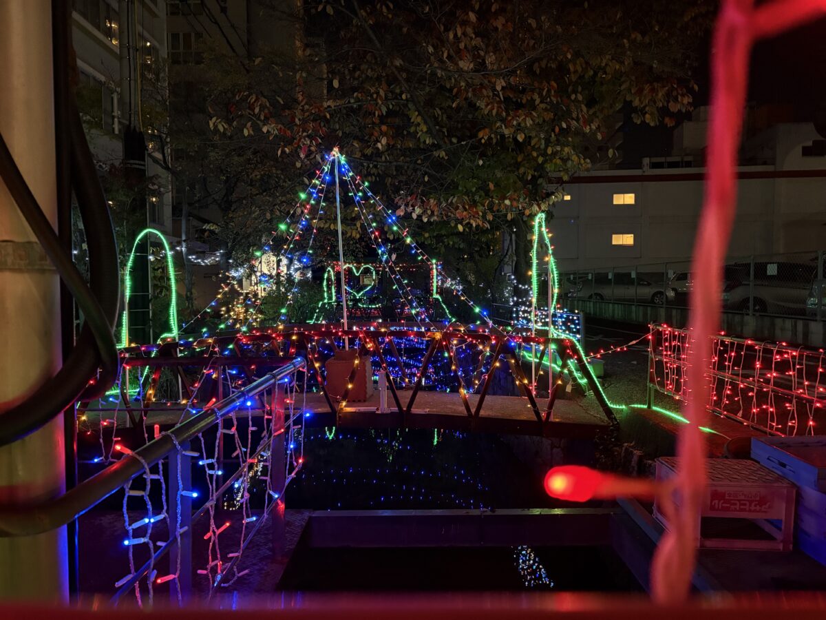 柳町町の山陽新聞本社ちょっと南の小さい川の上のイルミネーションでした!