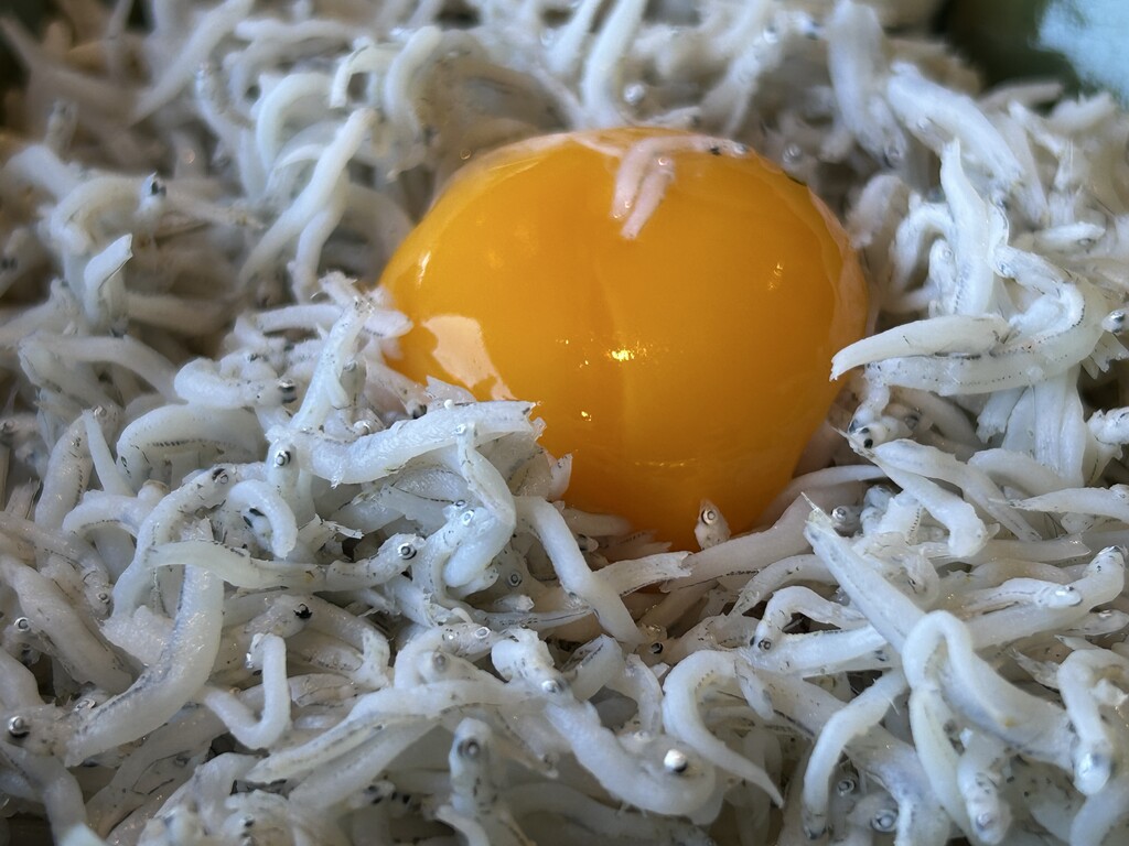 釜揚げしらす丼Mサイズ、卵黄トッピング♪