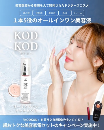 美容家電のプラットフォーム事業を展開するBEERACLEは、自社D2Cブランド「CHAREVIE(シャレヴィ)」より、新製品「KODKOD All in one rich serum(コドコド オールインワン リッチ セラム」を販売中だ。コース価格は19,800円〜(税込)。