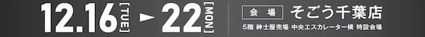 開催地:そごう千葉店 5階 紳士服売場 中央エスカレーター横 特設会場