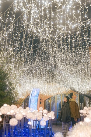 同施設は、普段は結婚式で訪れる新郎新婦とゲストのための場所だが、冬季は地域住民にも楽しんでもらえるよう、「幸せを願う」をテーマに、大聖堂の外壁と中庭をライトアップし、毎年無料で一般開放している。