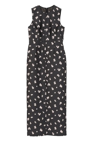 「MINAMI TANAKA×CLANE FLOWER JACQUARD ONEPIECE」26,000円(税抜)は、花柄をジャガードで織り上げたオリジナル素材を使用。素材の魅力を引き立てるため、デザインはシンプルなIラインシルエットに。背中はシアーの切り替えを施し、スカート裏地をあえてミニ丈にすることで、歩くたびに足元へほのかな抜けが生まれる一着に仕上げている。