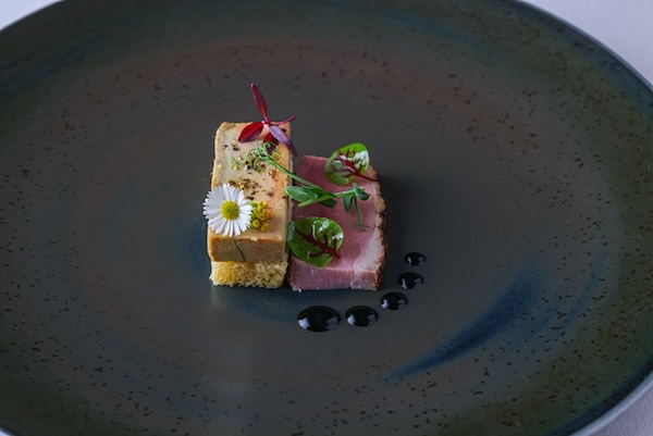 続いてHors d’oeuvre [塩味]は、フォアグラのテリーヌ、近江鴨の軽い燻製と自家製ブリオッシュ、