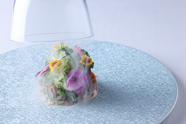 ミクニ マルノウチでは、江戸東京野菜をはじめとする“自然の恵み”を生かしたナチュラルフレンチに「五味(甘味・塩味・酸味・苦味・うま味)」をテーマとした“新たな味覚体験”を融合させた特別なコースを用意している。