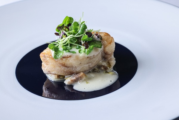 Poisson [酸味]として、鮟鱇のムニエルと北寄貝のグリエ、ソースブールブラン、ポワロー葱とオレンジ白菜、ポワトリーヌセッシュのエチュベ、