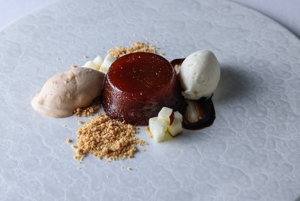 そしてDessert [苦味]は、タルトタタンとプラリネのジェラート、フレッシュなりんごとバルサミコのアクセント、という構成になっている。