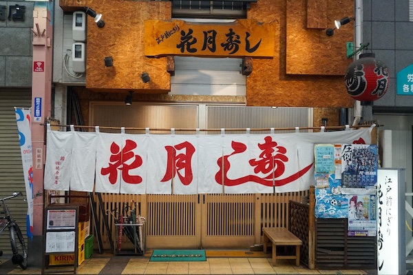 布施駅の北口を出て、ブランドーリ1番街のアーケードを抜ける。パチンコ屋の明かり、焼鳥の煙、道端の立ち話──そんな布施らしいざわめきの中に、ひときわ落ち着いた存在感で佇むのが「花月寿司」だ。