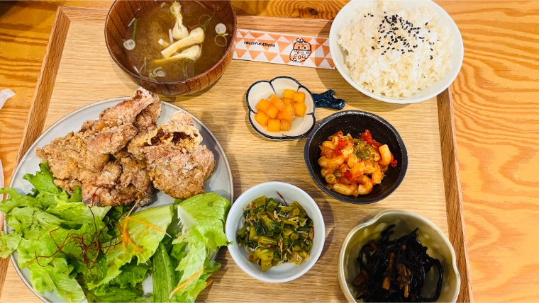 大きめのからあげがごろっと入っていて、想像以上の満足感でした。お肉はしっとり柔らかく、衣も軽やかな仕上がりで、からあげなのにやさしい定食でした。小鉢も多く、栄養バランスも良さそうで「これなら毎日食べたい」と思えます。