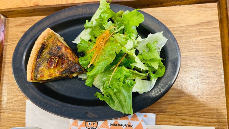 「トマトとモッツァレラのキッシュ」は、軽めに食べたいときにもぴったり。野菜たっぷりで、子どもにも大人気でした。カフェでちょっとおやつ気分を楽しみたいときにも良さそうなメニューで、またリピートしたい一品です。