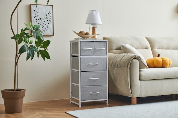 このチェストは、ベッドサイドやリビングなど限られたスペースでも使いやすいスリム設計に加え、布製引き出し、サイドポケット、フックなどの便利な機能を搭載した新発想の収納家具だ。デザイン性と収納力を両立させ、毎日の生活をより快適に整えることを目指した。
