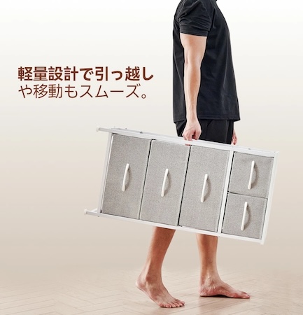 また、軽量設計のため、女性でも簡単に移動可能。掃除や部屋の模様替え、季節ごとの衣替えなどもスムーズに行え、部屋の空間を自由にレイアウトできる。生活シーンに合わせて自在に動かせるため、使い勝手の良さは抜群だ。