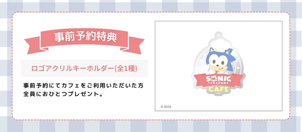 コラボカフェでは、限定のフードメニューや今回のために描き下ろした、キュートなソニックたちのイラストを使用したグッズの販売を予定。また、席の事前予約を受け付けており、事前予約特典を用意している。