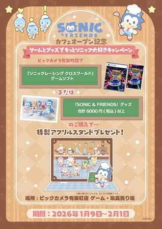 同じビル内にあるビックカメラ有楽町店のゲーム・玩具売り場にて、『ソニックレーシング クロスワールド』のゲームソフト、または『SONIC & FRIENDS』グッズを合計6,000円(税込)以上購入した人に「特製アクリルスタンド」がプレゼントされる。