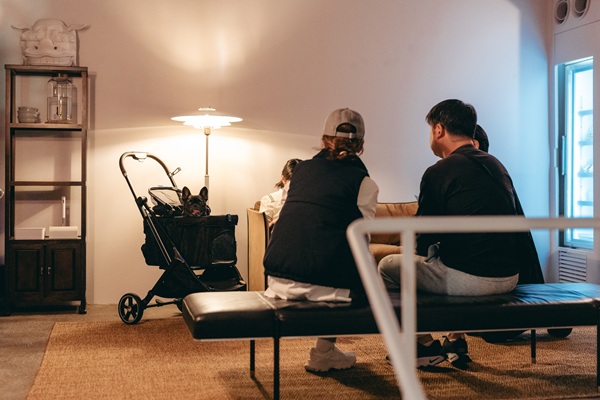 クッション性の高い素材が採用された床は段差がなく安心・安全。壁やソファには防臭・防汚性に優れた素材が使われているので、汚れを気にせず、愛犬とのびのび過ごすことができる。