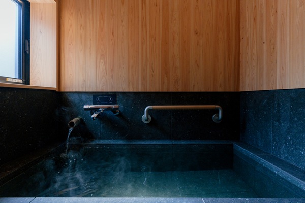 4月には、わんファミリー温泉付山荘がリニューアル。小型犬3頭まで、中型犬は2頭まで一緒に過ごせる一戸建て温泉付きの客室だ。温泉のお湯はナトリウム・カルシウム塩化物泉で、しっとりつるつるのお肌に導く美人の湯と呼ばれている。