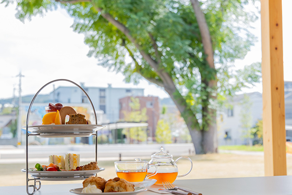 モーニング、ランチ、カフェタイムと一日を通じて利用でき、焼き立ての生スコーンと「一日中楽しめるアフタヌーンティー」が特徴だ。営業時間は、月~日8:30~17:00(料理L.O.16:00 ドリンクL.O.16:00)。