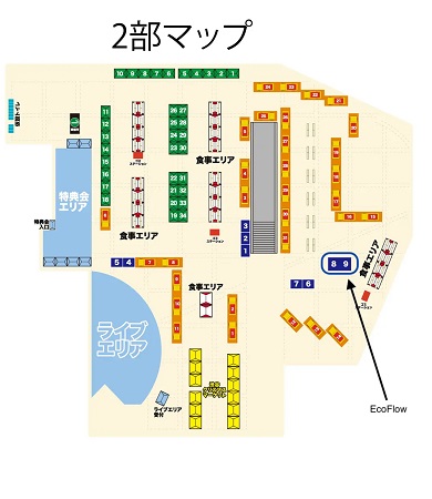 EcoFlowスマートエネルギーブースの場所は、代々木公園・野外ステージ(青8・9エリア)。ブース内で使用するすべての電力は、EcoFlowのポータブル電源によってまかなわれており、あたたかいブース内には、スマートフォンやPCを無料で充電できる充電ステーションも用意されている。