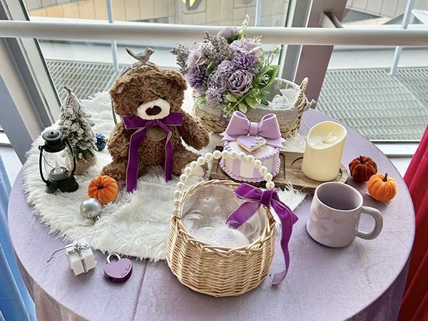 会場に設置された「ほっこりあったかカフェ風フォトスポット」は、赤、紫、ピンク、黄色など全7色で展開。