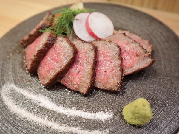 糸島の漁港から仕入れる鮮魚の刺身や、旬の野菜、和牛を使った創作料理など、季節感と素材の良さを活かした料理を提供。