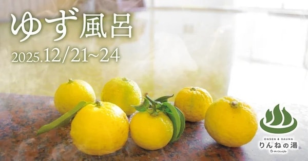 茨城県那珂市「THE BOTANICAL RESORT 林音(ザ ボタニカルリゾート リンネ)」内にある温浴施設「おふろcafé りんねの湯」では、12月21日(日)〜12月24日(水)の期間限定で、那珂市産の柚子を使用した“ゆず風呂”を実施する。
